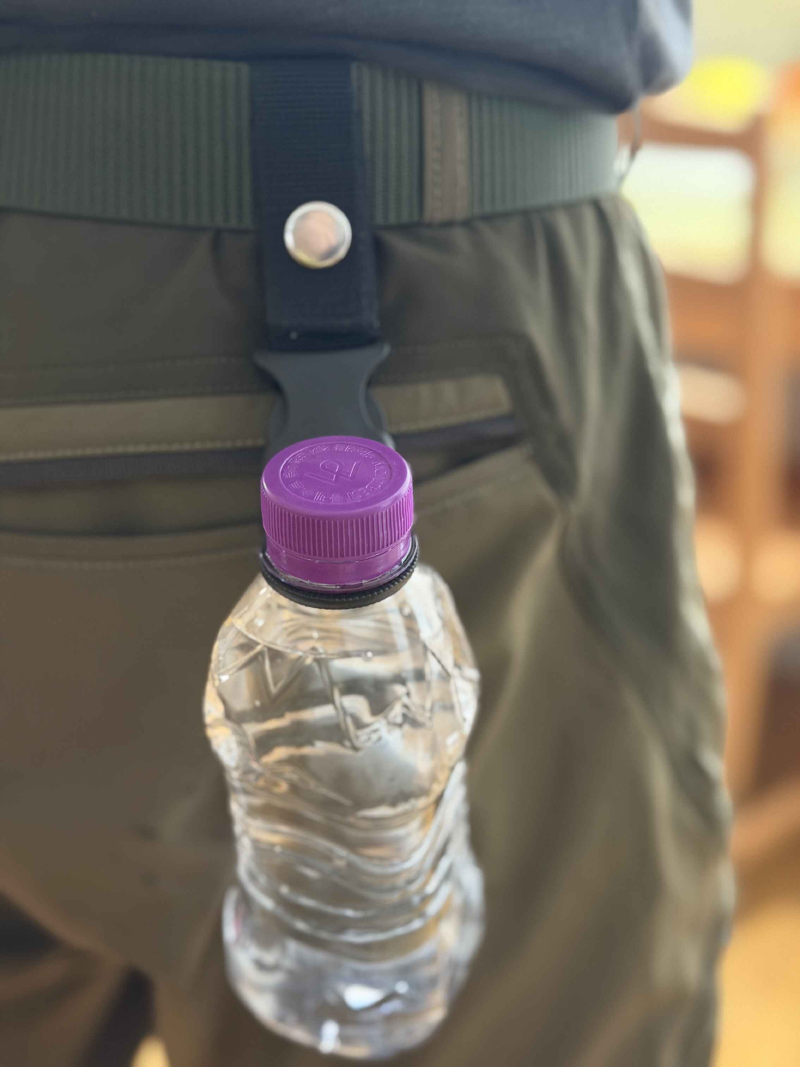 The structure is very similar to the neck-strap type clip found on the 1.5L water bottle twin packs sold at large supermarkets. It hooks perfectly around the bottle’s neck, and can be easily attached to and detached from the mount fixed on the belt, which is much more convenient than I expected.